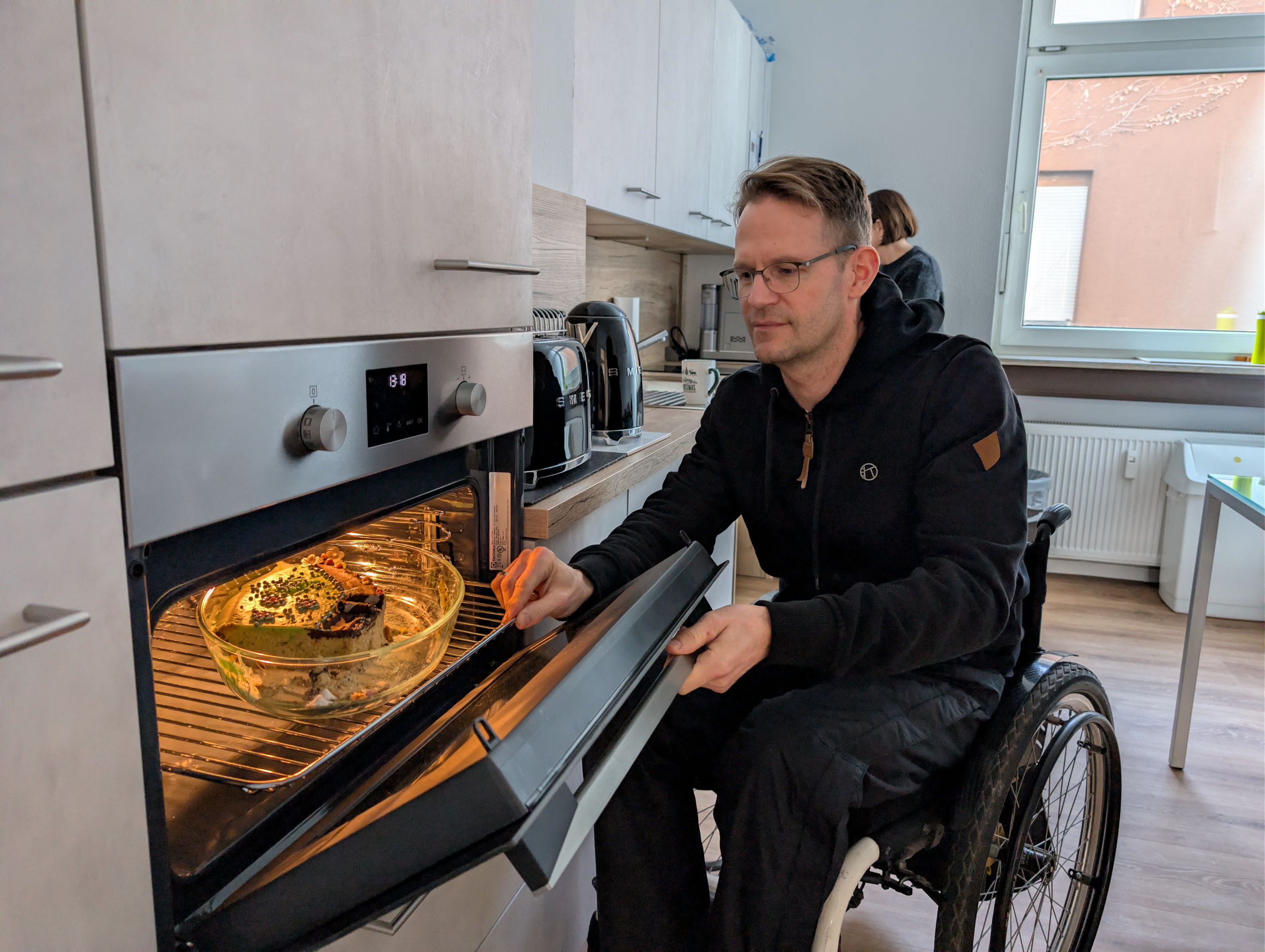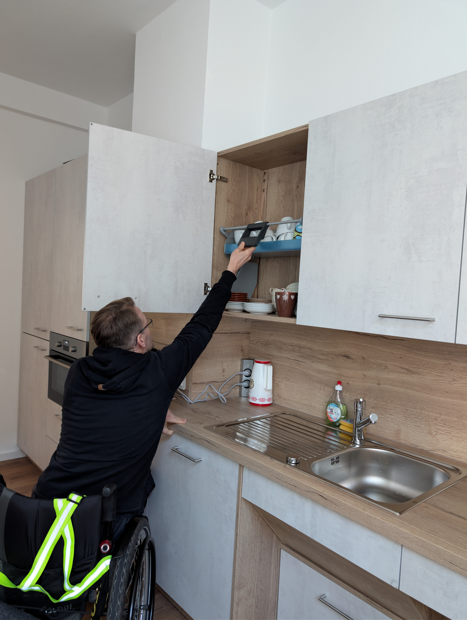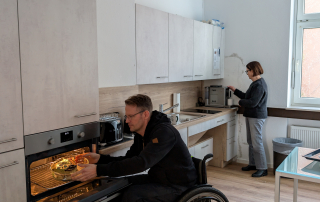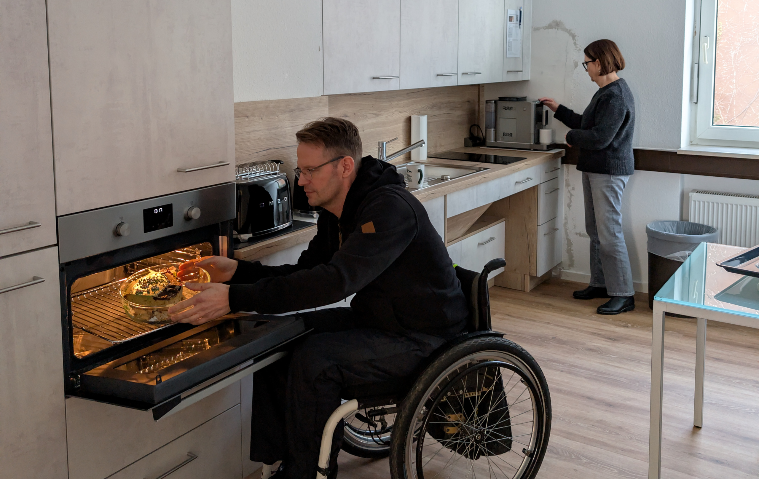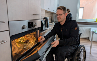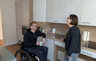 Erste Gruppen aus Ehrenamtlichen und Hauptamtlichen mit und ohne Beeinträchtigung nutzen die neue Küche bereits. So konnten wir beispielweise die Redaktionssitzung für unser Mitgliedermagazin „Dabei“ hier in Präsenz durchführen. Mit der neuen Küchenausstattung war es kein Problem für die Rollstuhlfahrer:innen vom Multimediaraum in die Küche zu fahren und sich Tassen oder Gläser zu holen, sich an der Kaffeemaschine zu bedienen oder eine Kleinigkeit zuzubereiten. Die Küche erleichtert auch wesentlich das Zusammenkommen in den nun barrierefreien Räumen der Küche. Nach Fertigstellung der Küche haben wir auf unseren Social-Media-Kanälen und auf unserer Website über das Projekt berichtet.